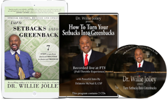 In this book, Dr. Willie Jolley shares secrets he learned from some of the world’s top achievers on how they were able to turn their setbacks into greenbacks. Use this powerful step-by-step guide to help you get past this economic tsunami and turn it into a wealth-building opportunity!